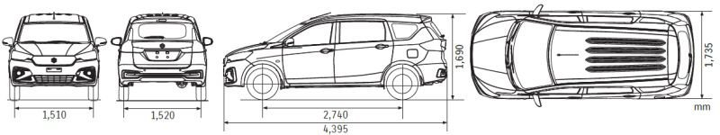 Panjang x Lebar x Tinggi Keseluruhan (mm)