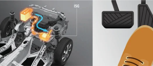 Teknologi ISG menambah tenaga ke mesin untuk putaran mesin yang lebih ringan dan bahan bakar yang lebih irit bahkan saat akselerasi.